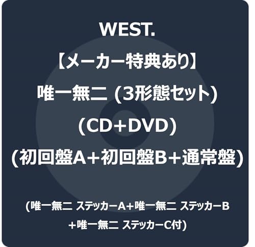 【メーカー特典あり】唯一無二 3形態セット (CD+DVD) (初回盤A+初回盤B+通常盤) -WEST. (唯一無二 ステッカーA+唯一無二 ステッカーB+唯一無二 ステッカーC付)